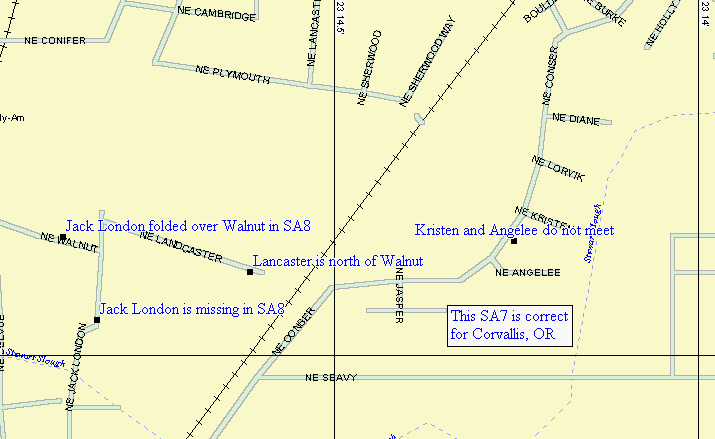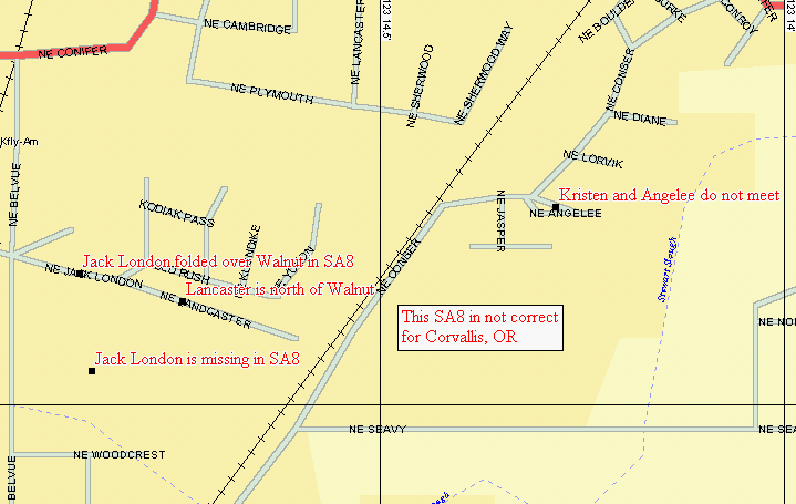 In an attempt to add the streets, Kodiak Pass, Klondiak, Gold Rush, and Alaska Way, SA8 has completely goofed up the street layout in this area. Delorme says "DeLorme made the decision to go with new GDT street data to improve the overall quality of the map data." Someone said this is the company that's doing the MicroSoft street data...???